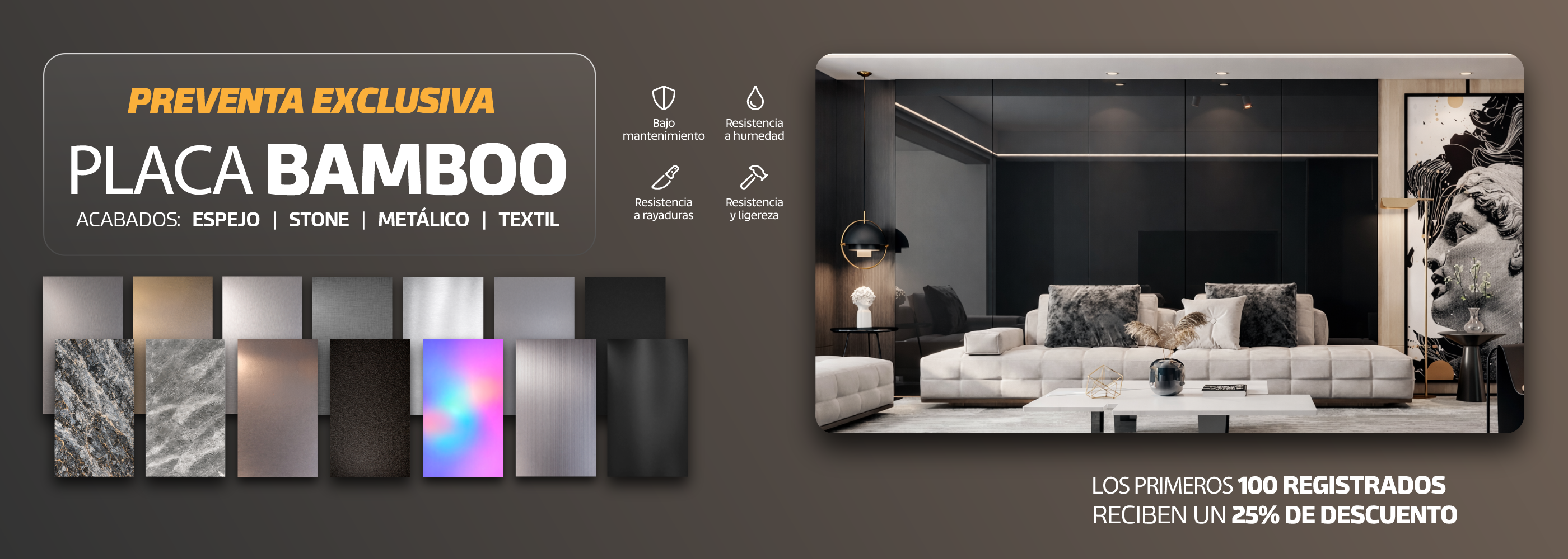 Variedad de texturas y colores para cualquier ambiente.